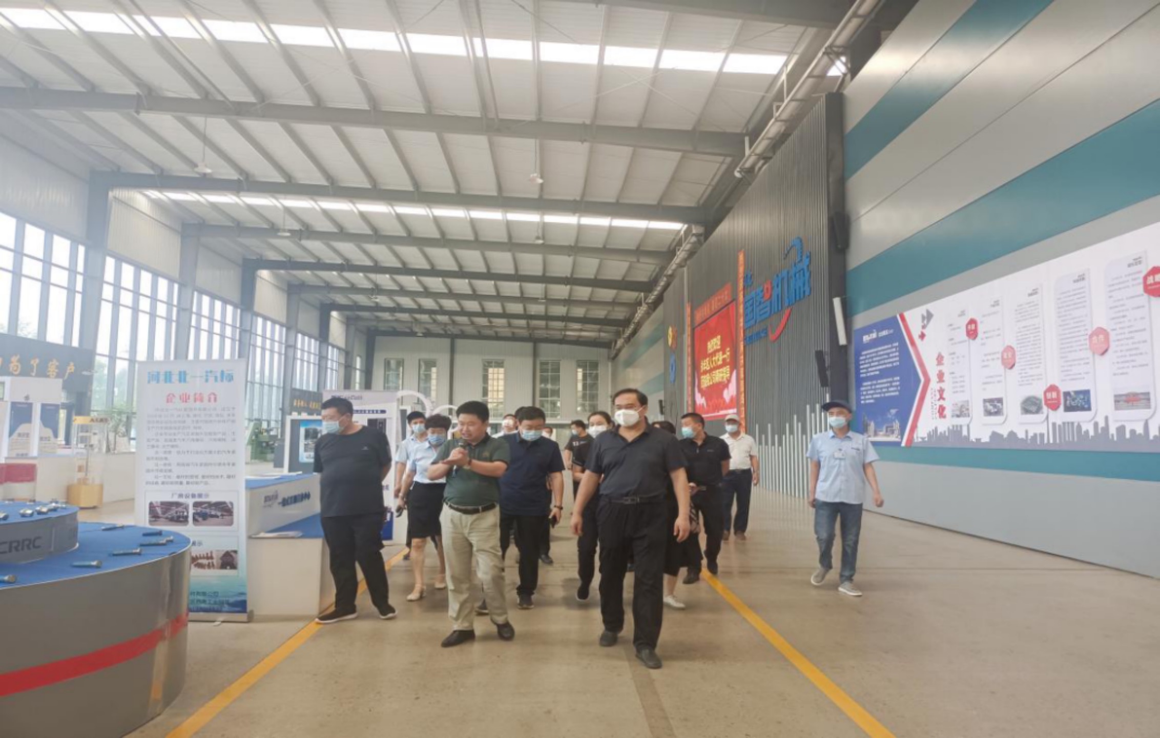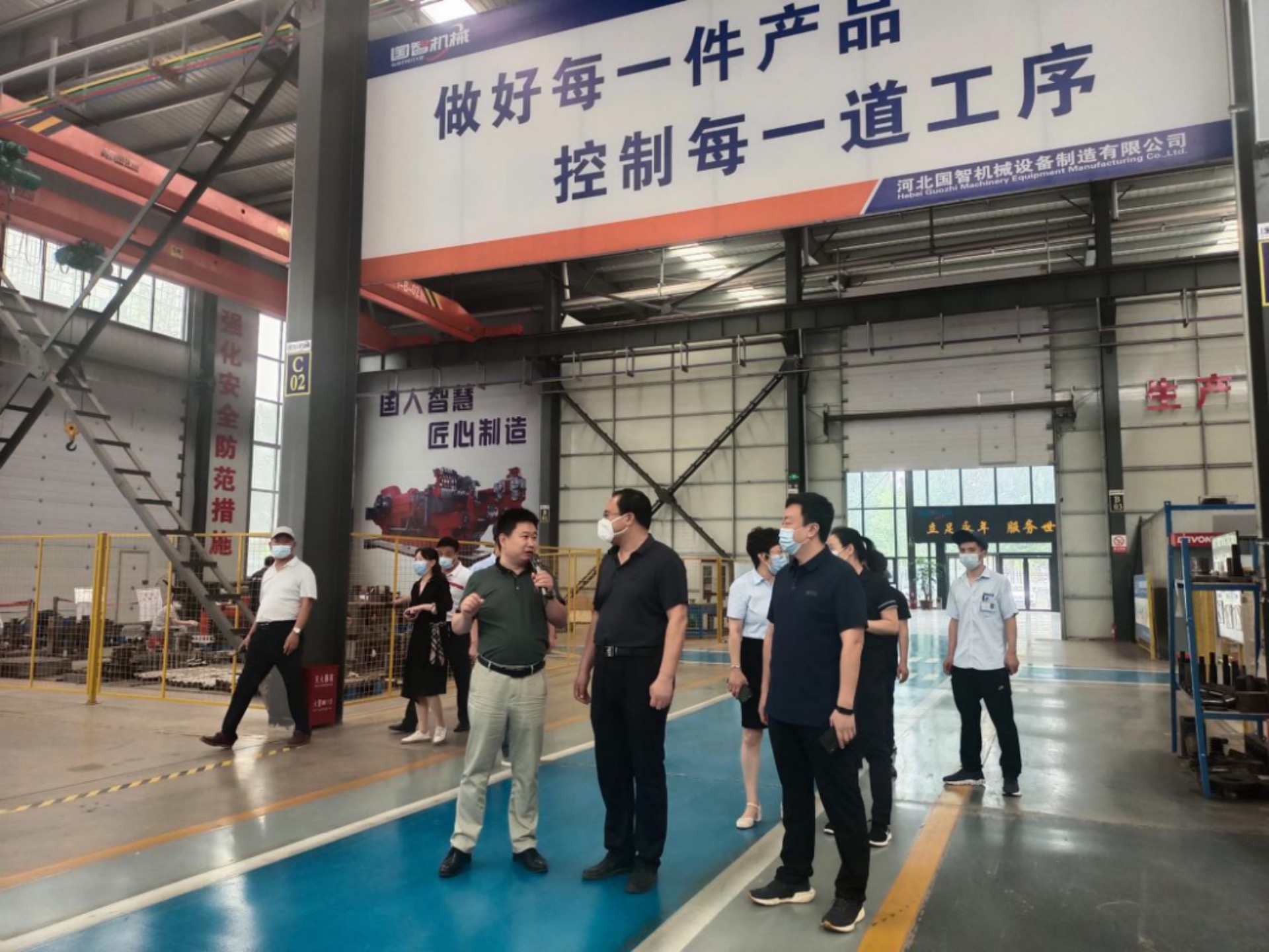 公司董事长张延岭陪同车间参观,汇报了复工复产以来的具体生产情况。